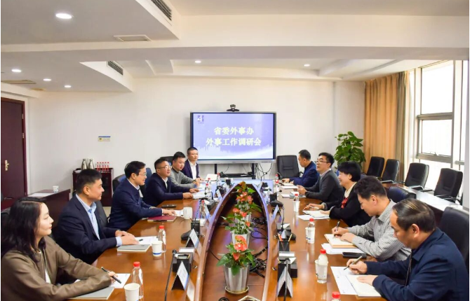 11月13日下午,省委外事办主任郭宁一行到集团开展工作调研,集团党委副书记、副董事长、总经理谭丁热情接洽,集团党委委员、副总经理刘屹颀参加。谭丁对郭宁一行的到访表示欢迎,感谢省委外事办对集团国际业务一直以来的大力支持与信任。
