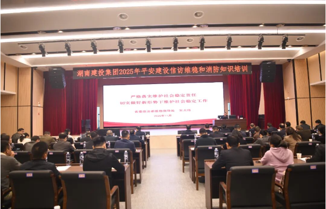 11月14日,湖南建投集团在建投六建举办2025年平安建设、信访和消防知识培训,深入贯彻习近平法治思想和习近平总书记关于平安建设的重要论述、重要指示批示精神,进一步提升信访实战能力和应急处置能力,努力营造平安稳定的发展环境。集团党委委员、副总经理桂兹军主持培训并授课,集团安全总监周慧作消防知识讲座动员讲话。