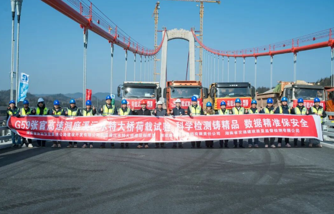 12月30日上午,随着最后一项试验数据采集完成,由湖南建投集团旗下湖南省交通科学研究院有限公司检测团队承接的G59呼北高速控制性工程——洞庭溪沅水特大桥荷载试验圆满收官。作为大桥通车前最关键的系统性检验,本次荷载试验分为静载与动载两部分,旨在全面验证桥梁的“钢筋铁骨”。洞庭溪沅水特大桥是G59呼和浩特至北海高速公路的关键“咽喉”,也是湘西北地区融入国家高速网的重要纽带。
