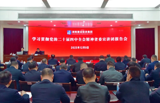 按照省委统一部署,12月9日下午,湖南建投集团举行学习贯彻党的二十届四中全会精神省委宣讲团报告会。谭丁强调,学习宣传贯彻党的二十届四中全会精神,是当前和今后一个时期的重要政治任务。要以此次宣讲为契机,在全面学习把握、扎实贯彻落实上持续下功夫,做到融会贯通、学以致用,坚定不移地把党的二十届四中全会精神落实到统一思想上、落实到具体行动上。