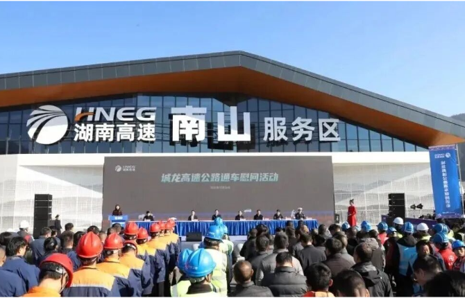 通车当日,邵阳市副市长贺源宣布项目通车,湖南高速、邵阳市交通局、城步县、湖南路桥、建投交建及相关参建单位负责人出席通车仪式。两条高速的顺利通车,离不开湖南建投集团建设者们的辛勤付出与攻坚克难。▲城龙高速南山互通此次两条高速公路的建成通车,是湖南建投集团深耕交通建设领域的又一重大成果。