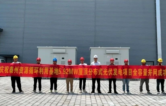 5月24日,由湖南省城乡环境建设有限公司与湘安产业投资公司共同投资的江苏泰州资源循环利用基地5.92MW屋顶分布式光伏电站项目实现全容量并网发电。该项目充分利用公司投资的泰州市垃圾分类收集后端处理工程PPP项目的4#、5#厂房屋顶资源,采用“自发自用、余电上网”模式开发建设。