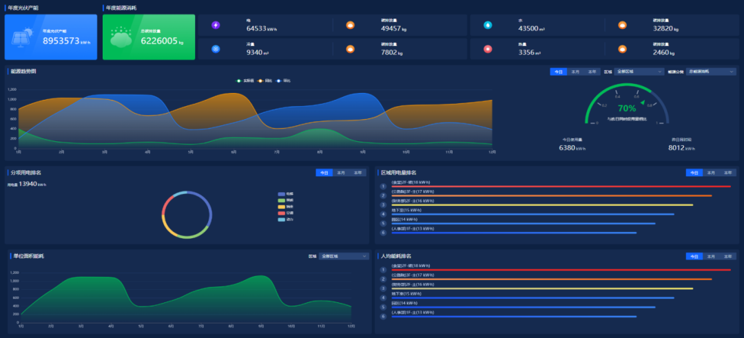 智慧能源管家:实时监测水、电、气、冷热源等能耗数据,结合天气、人流量等因素,通过AI算法动态调节空调、照明等系统,实现能效最优。