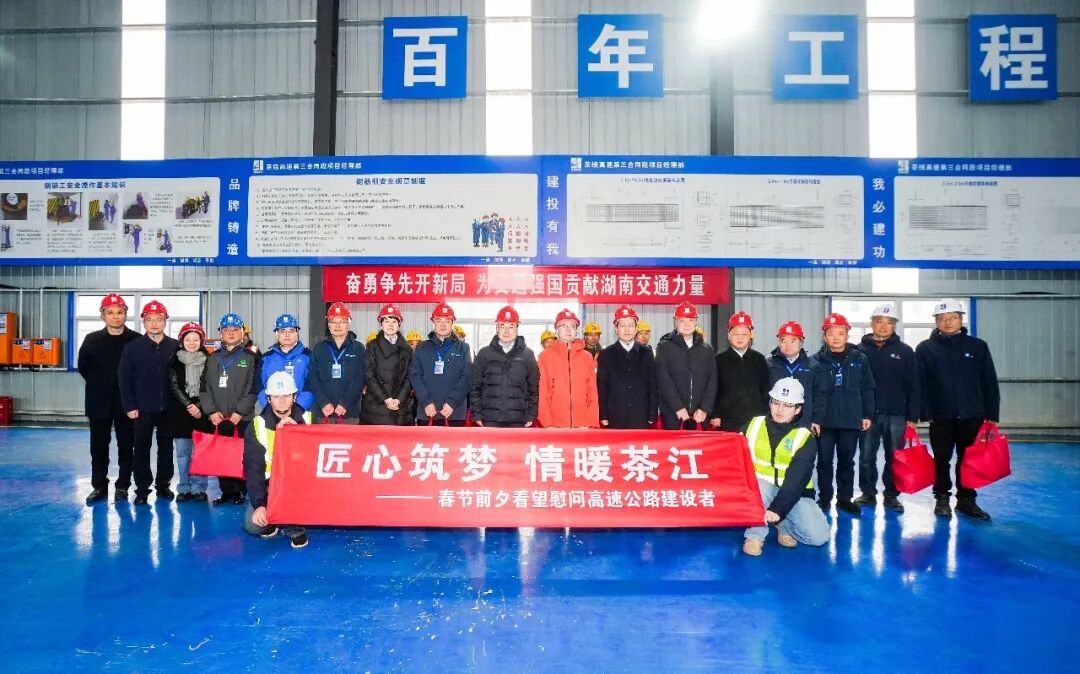 1月20日,湖南省总工会、湖南省交通运输厅在茶江高速智慧梁场联合举办湖南省交通建设领域首批农民工颁发职业技能等级证书暨看望慰问建设者活动。中国海员建设工会分党组书记、主席李庆忠,省交通运输厅党组书记、厅长刘扬,省总工会党组书记、副主席罗琼出席活动,并现场看望慰问茶江高速项目建设者。集团工会主席周先平参加有关活动。
