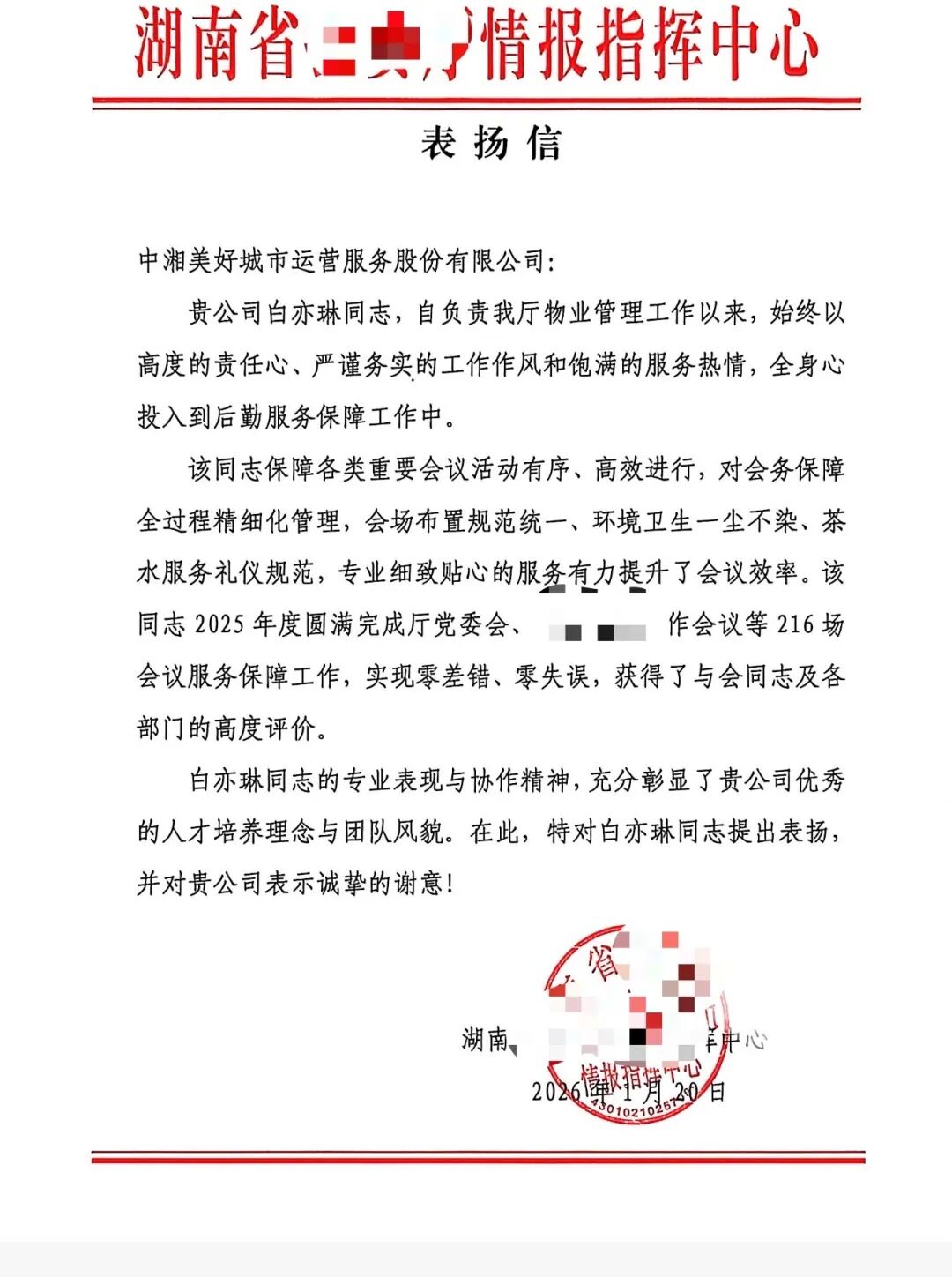 每一封表扬信都是一个答案,它不只为感谢而来,更在讲述为什么是“中湘美好”。近日,来自省市政府机关的肯定纷至沓来,专业刻度里的坚守,日常琐碎中的匠心,急难时刻前的担当,这些被时间与实践验证的“服务密码”,就藏在每一行真挚的文字背后。
