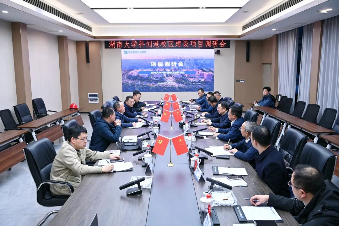 湖南大学基建处、办公室、科创港校区建设办,湖南建投集团党委办公室、建工集团、中湘美好相关负责人参加。