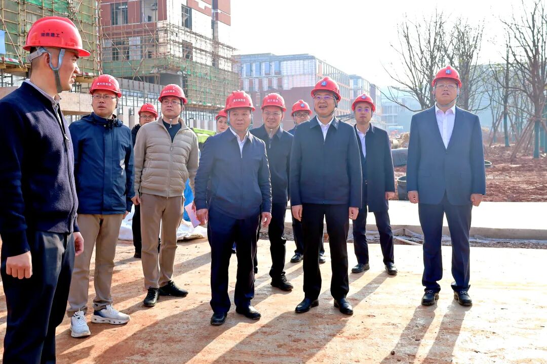 2月11日,湖南建投集团党委书记、董事长蔡典维来到湖南大学科创港校区二标段项目现场,实地调研督导项目建设及安全生产等工作,与湖南大学校长段献忠进行座谈交流,就快速推进项目建设进行探讨并达成共识。湖南大学党委常委、副校长汪卫斌参加。