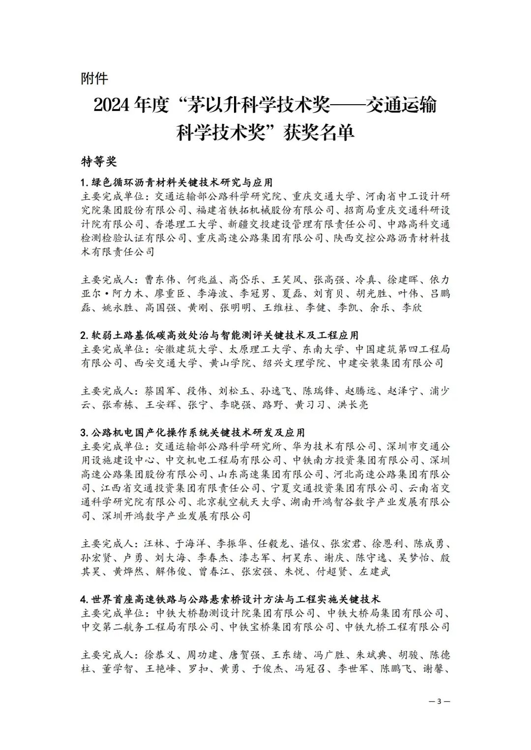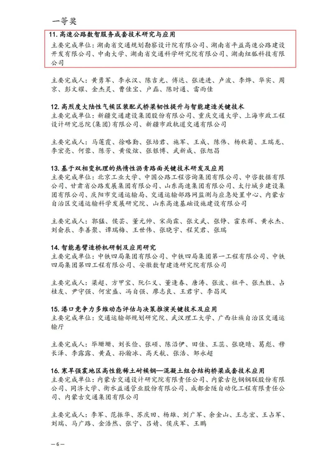 近日,从北京传来喜讯,湖南建投平益高速“高速公路数智服务成套技术研究与应用”“多源固废在道路工程中低碳高值化利用关键技术及示范” 分获 2024 年度 “茅以升科学技术奖 —— 交通运输科学技术奖”一等奖、二等奖。这不仅有力推动了湖南智慧高速建设与交通基础设施高质量发展,更为交通强国战略中技术革新、智能交通体系构建等提供有力范例。