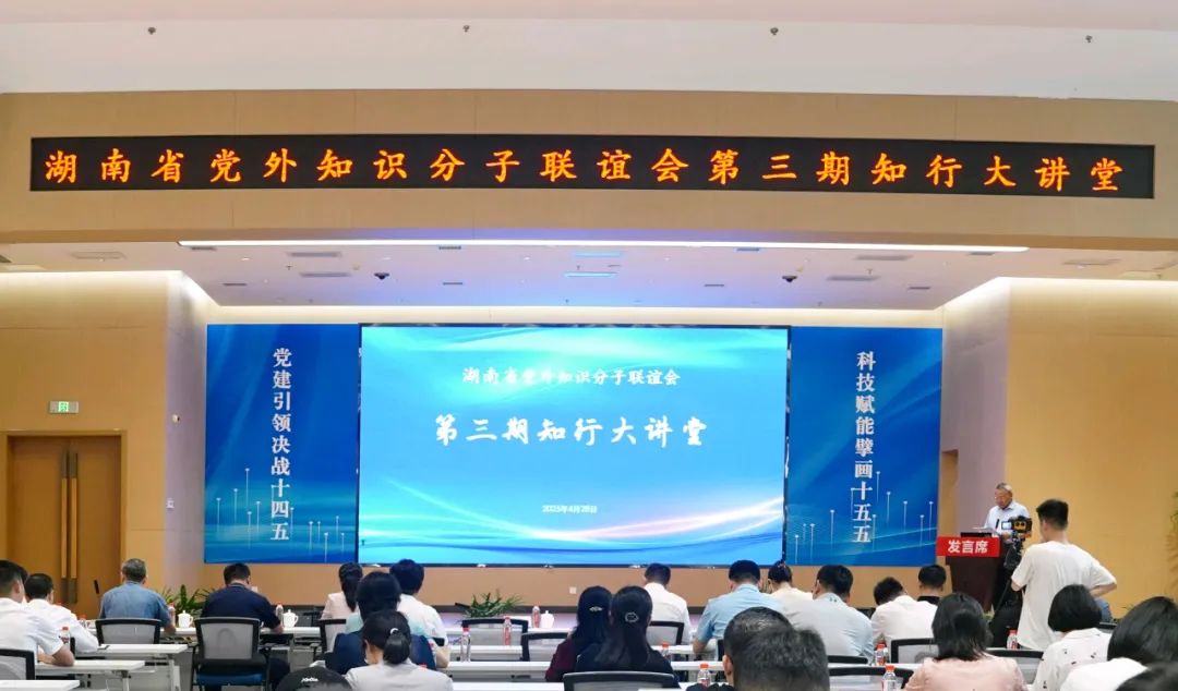 4月28日,湖南省党外知识分子联谊会第三期“知行大讲堂”在湖南建投建科院举行。省委统战部副部长向恩明出席,省知联会会长吴金水主持,集团党委副书记、职工董事陈克军出席有关活动。