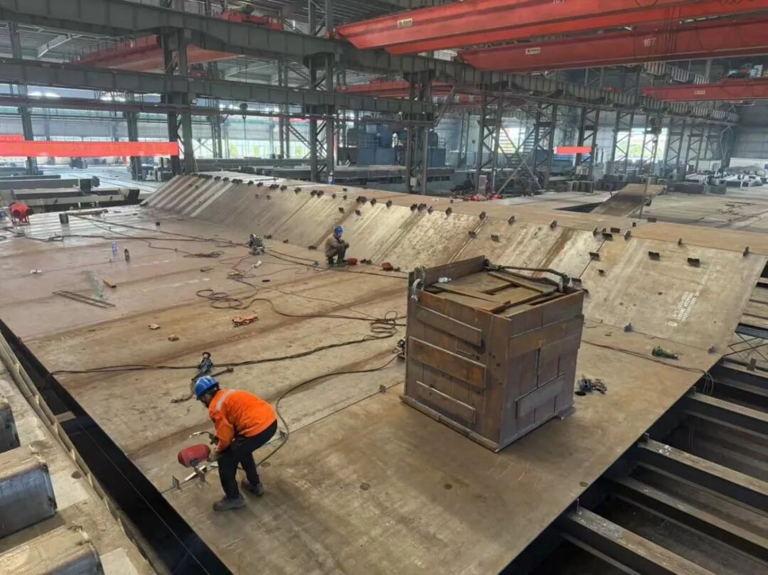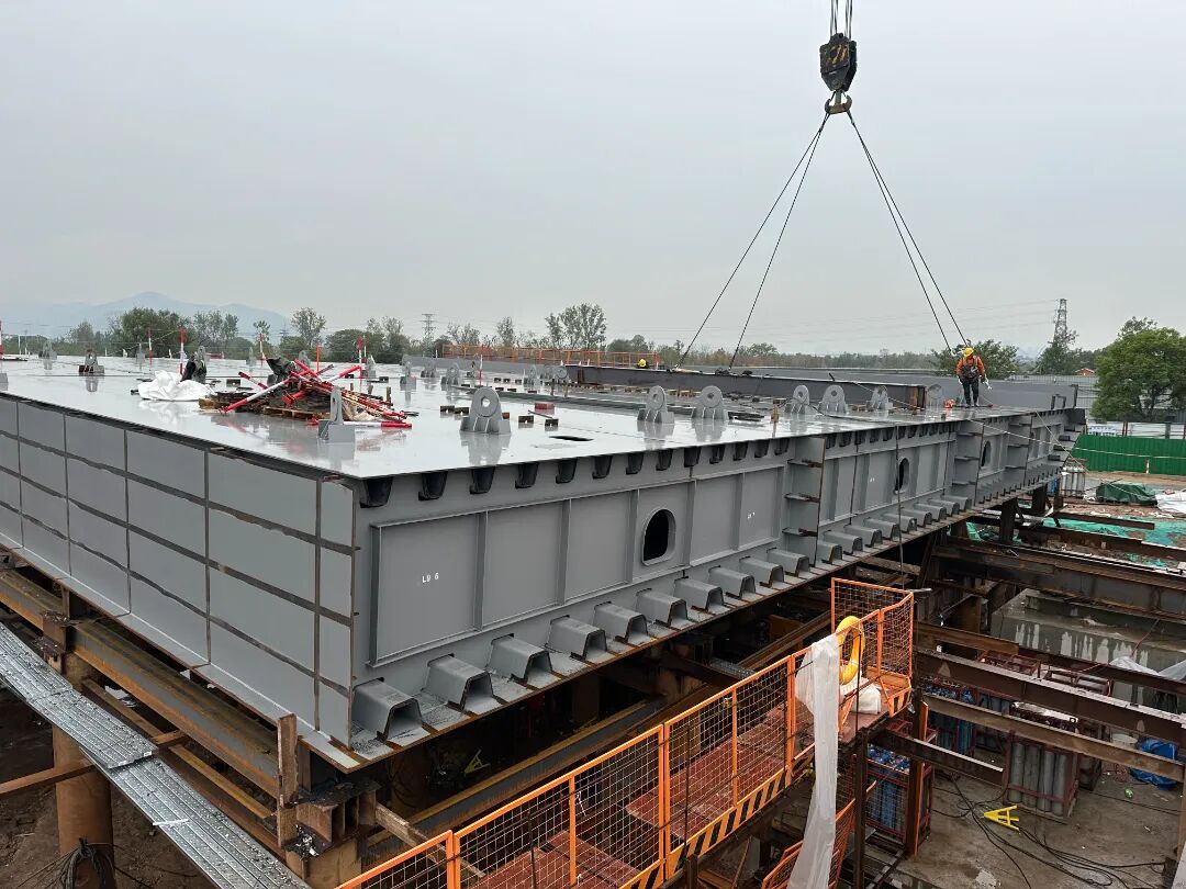 “这就像在数十米高空进行一场精密的‘微创手术’”,林立军形容道,“不仅要移动这个五百多吨的大家伙,更要确保它精准到位。”在智能控制系统的指挥下,滑移过程以毫米为单位徐徐推进。测量人员不断报数,调整指令随即发出,复核数据再次确认——一套“测量—调整—复核”的闭环质量控制流程,确保了安装精度与后续焊接质量的全面受控。