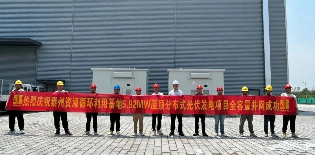 5月24日,由湖南省城乡环境建设有限公司与湘安产业投资公司共同投资的江苏泰州资源循环利用基地5.92MW屋顶分布式光伏电站项目实现全容量并网发电。