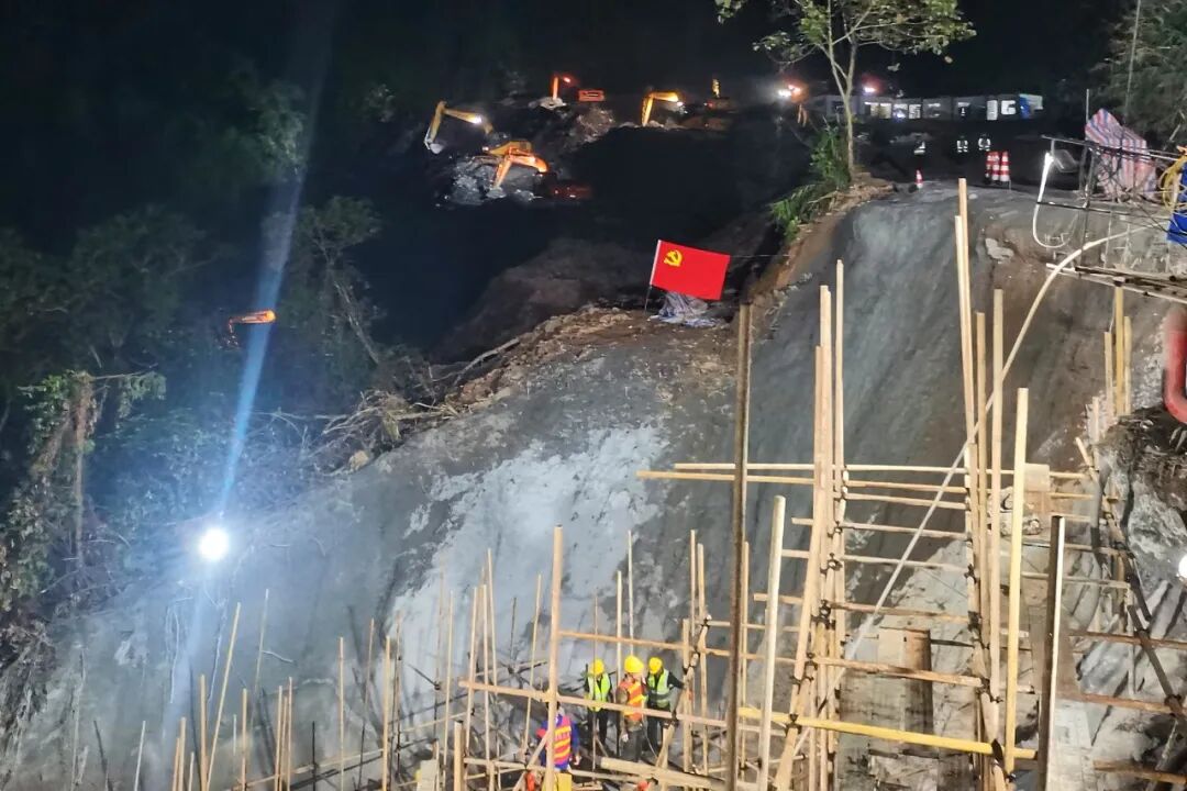 10月11日,一支由党员干部、技术骨干、青年突击队员组成的抢险队连夜跨省抵达现场,肩负“最快速度抢通生命线”使命。湖南路桥有关负责人第一时间赶赴现场,迅即构建“集团统筹、分公司落实、专班攻坚”抢险指挥体系,一场与时间赛跑的战役就此打响。