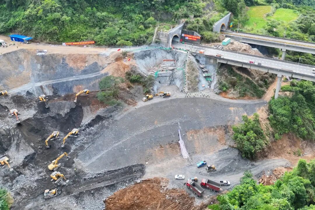 2025年国庆期间,受台风“桦加沙”“麦德姆”强降雨影响,广西某高速公路隧道出口下边坡突发滑塌,1.6万立方米泥土倾泻而下,隧道基础明洞下沉,路面开裂,持续渗漏水导致坡体面临极其严峻的二次滑塌风险。集团旗下湖南路桥闻令而动,迅速调度二分公司跨省集结50余名技术骨干、230余名劳务人员及79台设备驰援抢险,历经40个昼夜连续攻坚,提前10天以“最快速度抢通生命线”,确保该高速公路隧道双向畅通。