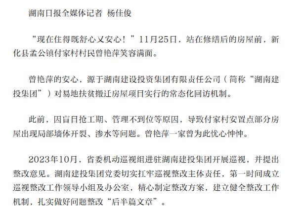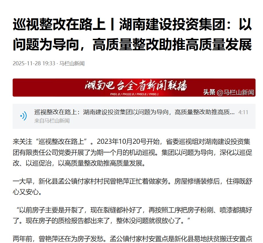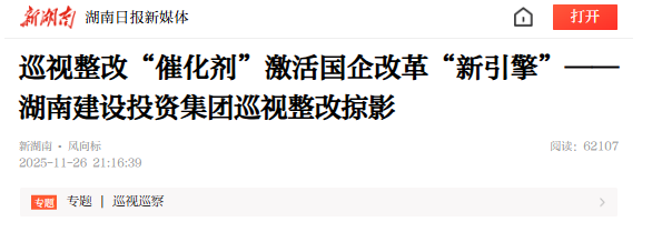 (2025年11月27日 三湘风纪巡视整改激活湖南建设投资集团改革“新引擎”)