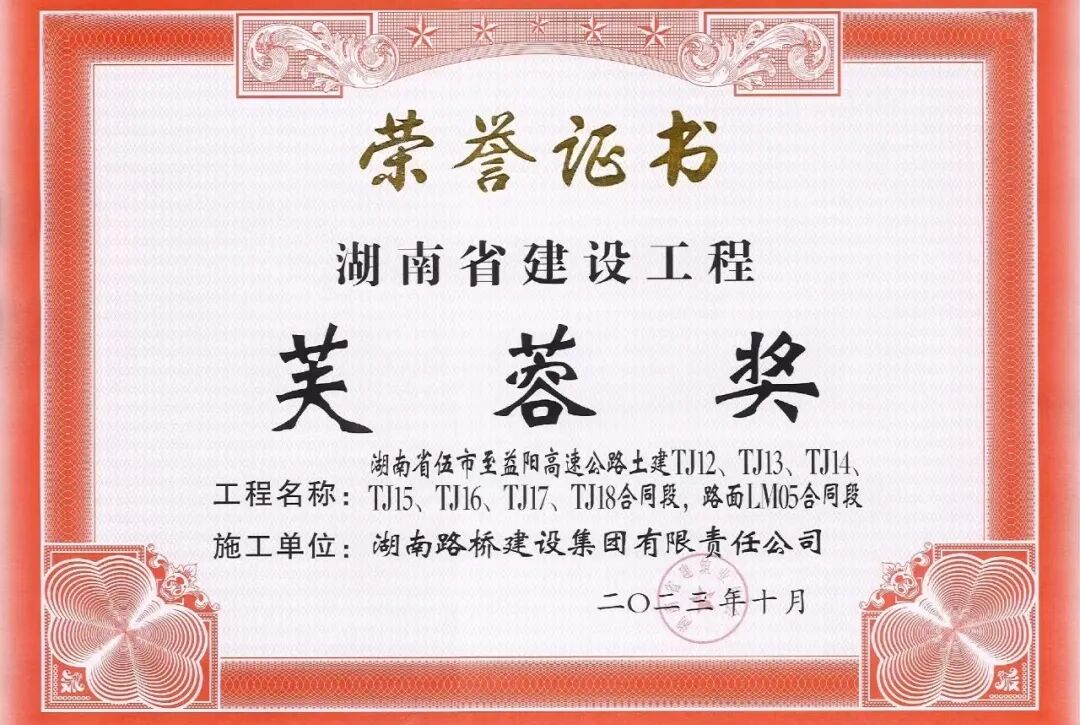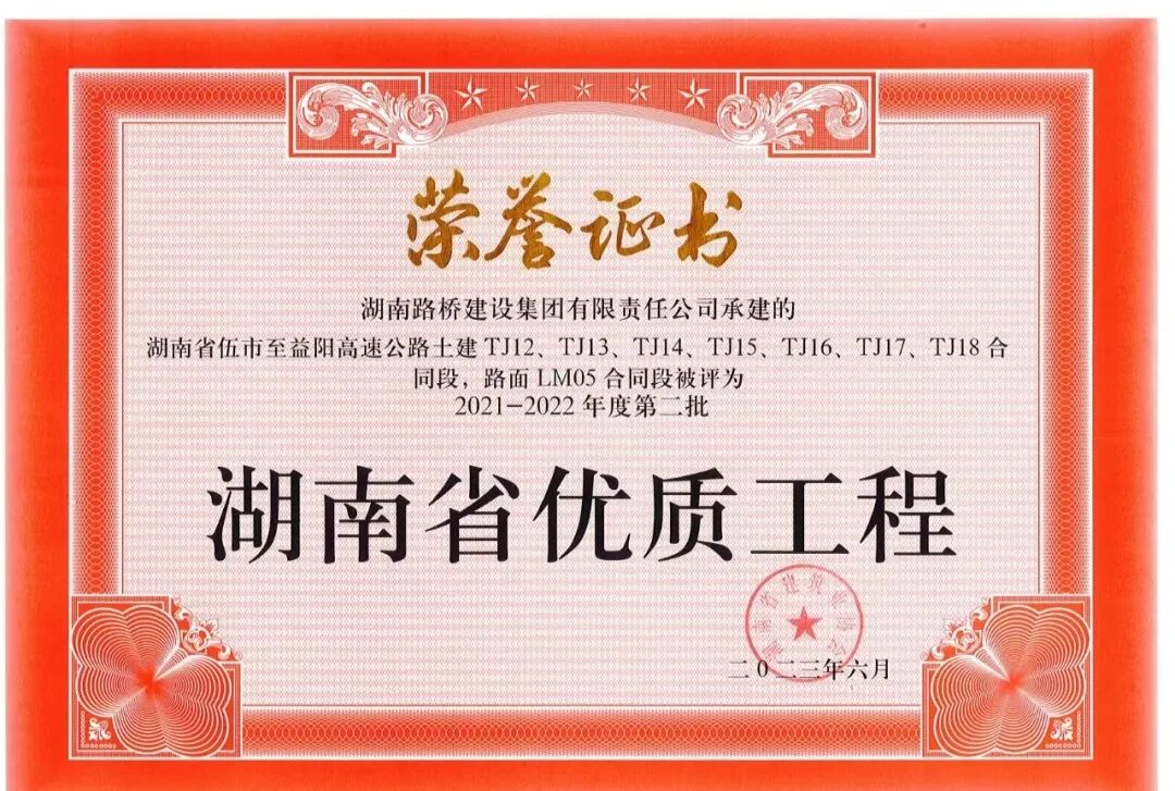 平益高速的荣誉版图,始于建设阶段的匠心坚守。自通车以来,项目在工程品质领域持续斩获重磅奖项:2023年,伍市至益阳段摘得湖南省建设工程最高荣誉“芙蓉奖”,平伍段、伍益段共15个合同段获评“湖南省优质工程”,从分段施工到整体品质均获行业认可;2024年,项目凭借卓越管理实践,将“全球道路成就(GRAA)”“国际路联(IRFAwards)国内提名奖”等国际荣誉收入囊中,让湖南高速建设标准走向世界。