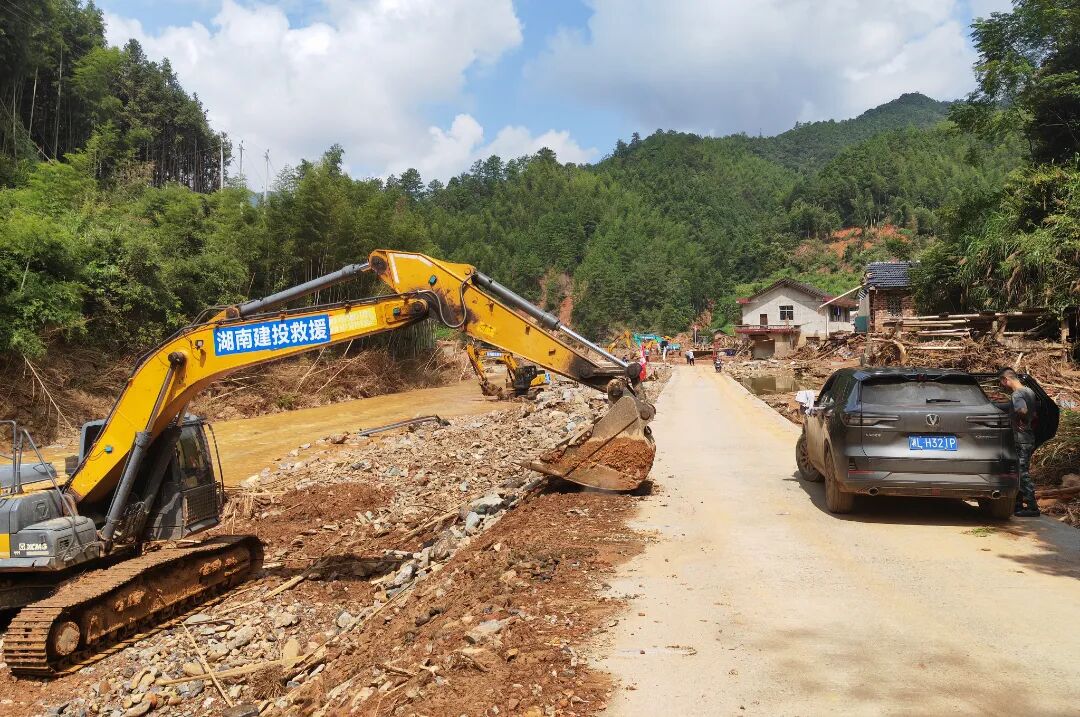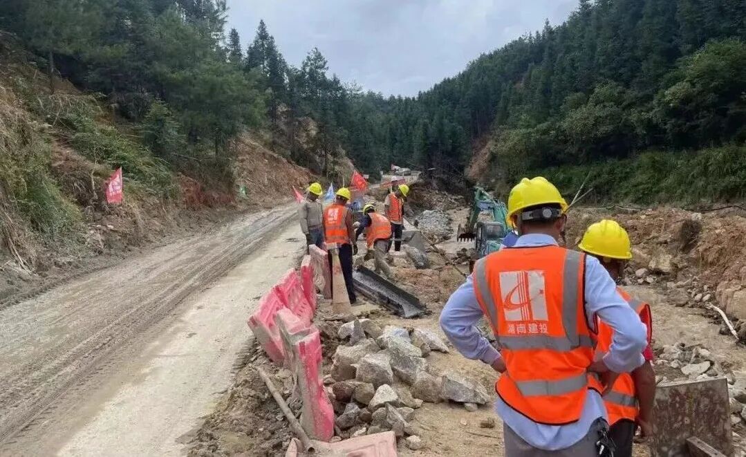 洪水未退,道路尽毁,通讯中断。集团党委书记、董事长蔡典维,集团党委副书记、副董事长、总经理谭丁赶赴一线,指挥部署。调集建工集团、湖南路桥、建投五建、基础投等精锐力量,第一时间成立应急指挥部,110余名施工人员、40余台大型设备连夜挺进灾区。