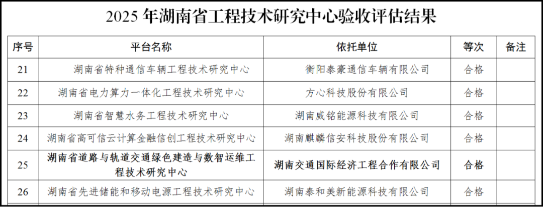 近日,由湖南建投交通国合牵头组建的“湖南省道路与轨道交通绿色建造与数智运维工程技术研究中心”(以下简称“工程研究中心”)顺利通过省科技厅验收,标志着工程研究中心正式进入常态化运行和高质量发展阶段。该中心是省内首个聚焦道路与轨道交通绿色建造与数智运维领域的省级工程技术研究平台。
