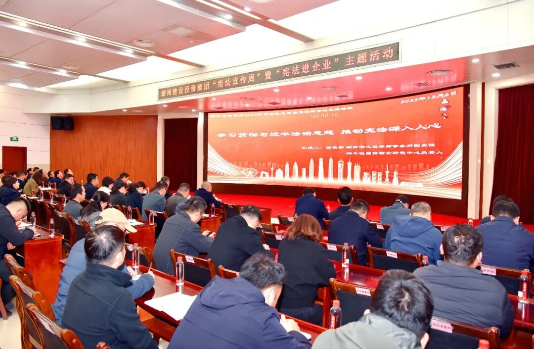 宪法宣传周如何真正“落地”,让文本上的条文转化为企业治理的效能?湖南建投集团在2025年宪法宣传周期间,以“学习贯彻习近平法治思想,推动宪法深入人心”为主题,开展了一系列有特色、有层次、有实效的普法活动,推动宪法精神融入经营管理、深入职工心中,为企业持续健康发展筑牢法治根基。