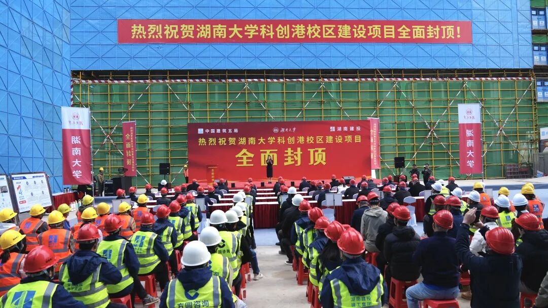 湖南大学相关处室负责人,湖南建投建工集团及项目相关人员参加封顶仪式。