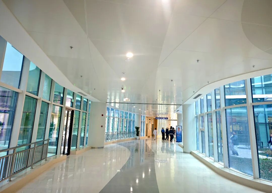 同时打造“花园式医院”环境,室内采用柔和色调与流畅线条,全区规划直升机停机坪,并计划设置120河西妇幼分中心,构建空中-地面立体急救网络。