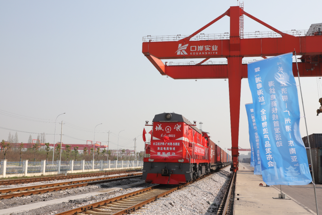 岳阳城陵矶新港多式联运物流园电商快线班列。(图源湖南港航水利集团)