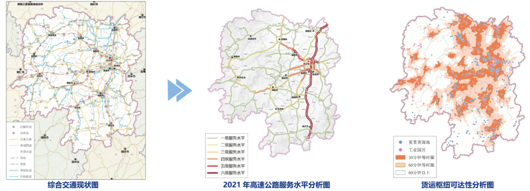 早在2021年,湘交科交通规划与战略研究院便聚焦物流领域深耕细研,接连完成《湖南省交通运输与物流融合发展研究》《湖南省综合交通基础设施与物流适应性研究》《湖南省汽车产业物流调研报告》等多项研究成果,同时结合交通大数据与GIS分析技术,系统梳理了湖南重点市州、重要区域及关键节点的货物流向、流量与流效,更首次精准揭示出湖南物流体系在“硬联通”与“软联通”层面存在的突出短板:高速公路与普通公路衔接不畅、不同运输方式间“最后一公里”梗阻、信息平台各自独立、数据壁垒难以打破……