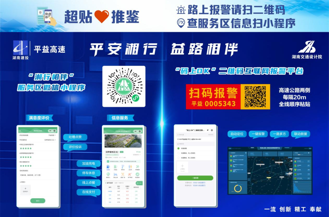 将党建调度与生产调度一体化运行,围绕智慧高速 “1+1+7” 总体架构(1 个数据中台、1 个 GIS 平台、7 个智慧应用),成立党员技术攻坚专班,牵头打造 “平益智慧高速综合运营管理平台”“码上 OK” 二维码报警平台,两项均获评 “湖南交通运输数字化应用场景典型案例”。